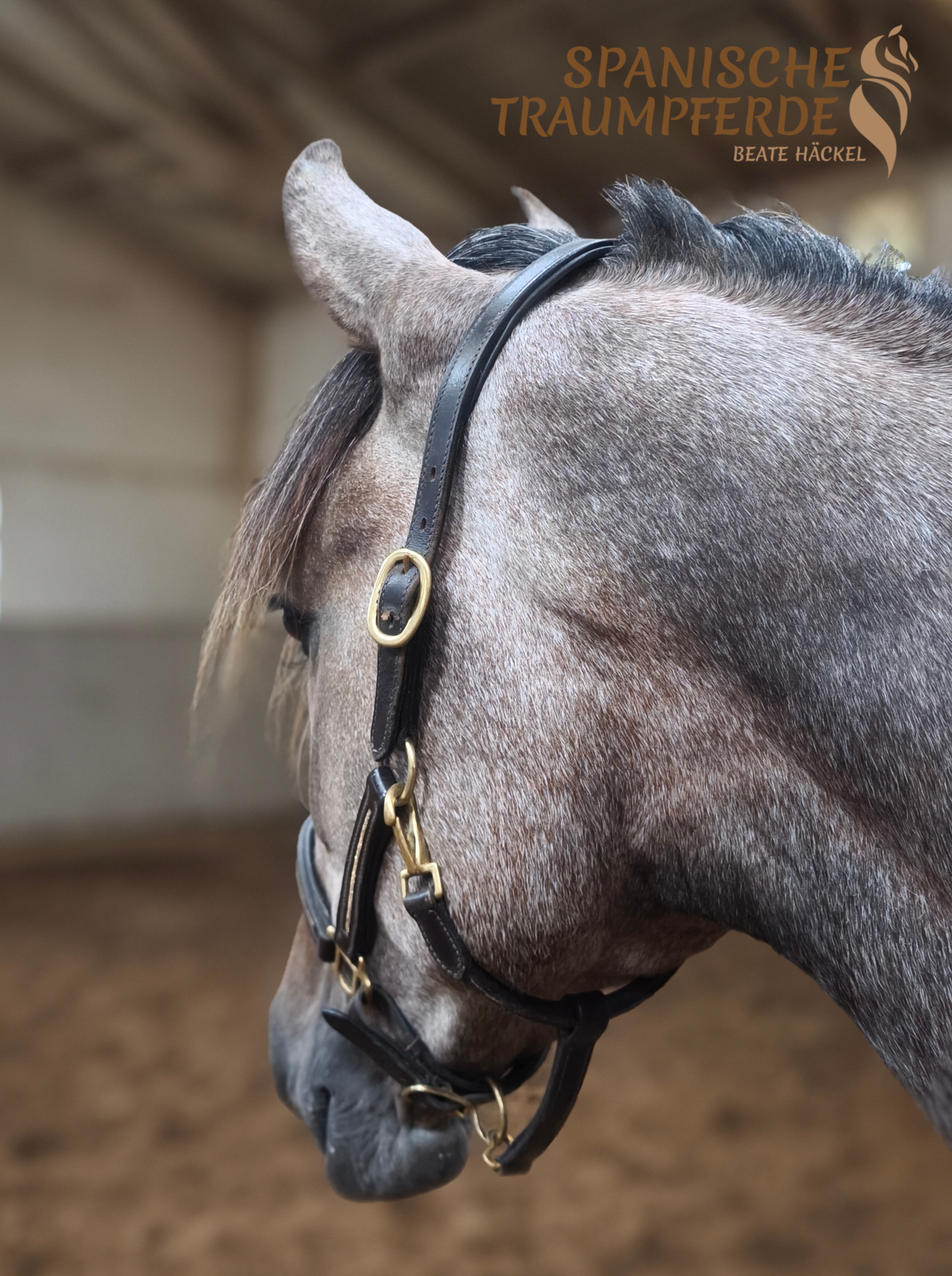 Was für ein wundervoller PRE - Wallach! Unser ✨MAXIMO LM✨ ist ein echtes Ausnahmepferd! Er macht jetzt schon, in seinem jungen Alter, ein unglaublich tolles Bild, zeigt leichtfüßige, raumgreifende Bewegungen und ist dabei wunderbar ausbalanciert. Mit seinem harmonischen Exterieur, seinem schönen Charakterkopf, dem lieben und sehr klaren Blick begeistert er jeden, der ihn sieht. Dazu ist dieser Wallach super lieb, sehr menschenbezogen und absolut klar im Kopf. MAXIMO LM ist ein Pferd von ganz besonderer Qualität und lässt jetzt schon erahnen, wie er sich zukünftig unter dem Reiter weiterentwickeln wird. Er ist ein Traumpferd zum Selberausbilden mit viel Potenzial für Dressur und Working Equitation. Der schöne Schimmel wartet nun in Traventhal auf seinen Herzensmenschen, der ihn weiter fördert.