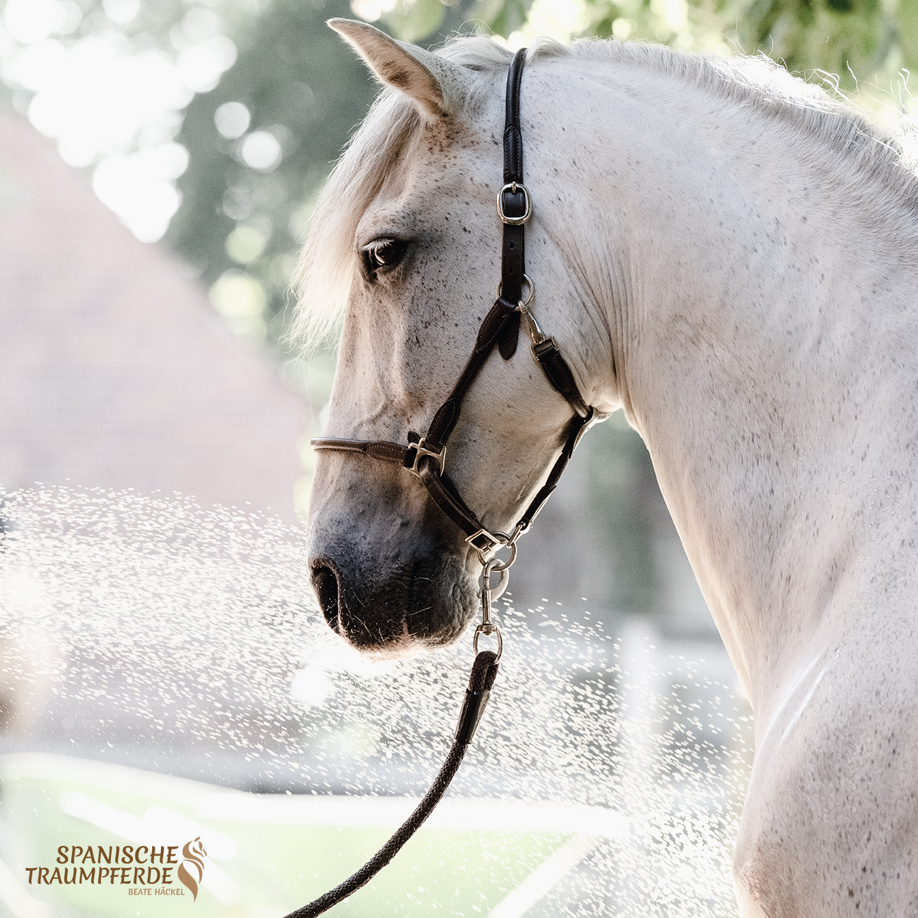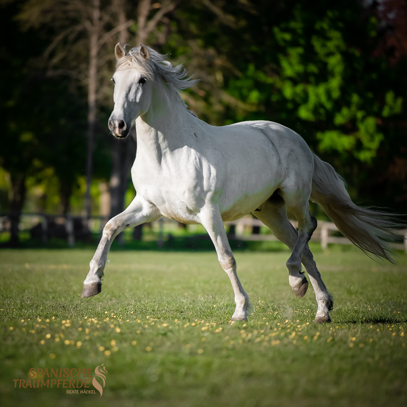 Dieser wundervolle PRE-Schimmelwallach hatte bereits sein zu Hause gefunden und wurde von Herzen geliebt. Doch nicht immer geht das Leben geradlinige Wege und leider muss nun für den lieben ✨RONALDO✨ ein neues und "für immer zu Hause" gefunden werden. Bei uns wird RONNY, wie er liebevoll von uns genannt wird, mit besonders viel Liebe und Zuneigung bedacht, da er nach seinem Umzug nach Traventhal ein wenig traurig zu sein scheint. RONALDO ist ein Pferd im allerbesten Alter von 15 Jahren. Er ist sehr lieb und höflich im Umgang. Unter dem Reiter ist RONALDO fleißig, angenehm sitzkomfortabel und auch im Gelände gelassen und kopfklar. Dennoch würde ich ihn nicht als Anfängerpferd bezeichnen. Unser schöner Schimmel ist ein zuverlässiger und unglaublich liebenswerter Freizeitbegleiter, der von Traventhal aus nun seinen Weg mit jemandem gehen möchte, dem er sein ganzes Herz schenken darf. Unser RONALDO ist ein Pferd vom alten Typ, sehr barock und hauptsächlich Yeguada Militar gezogen. Dieses Traumpferd kann persönlich kennengelernt und zur Probe geritten werden.