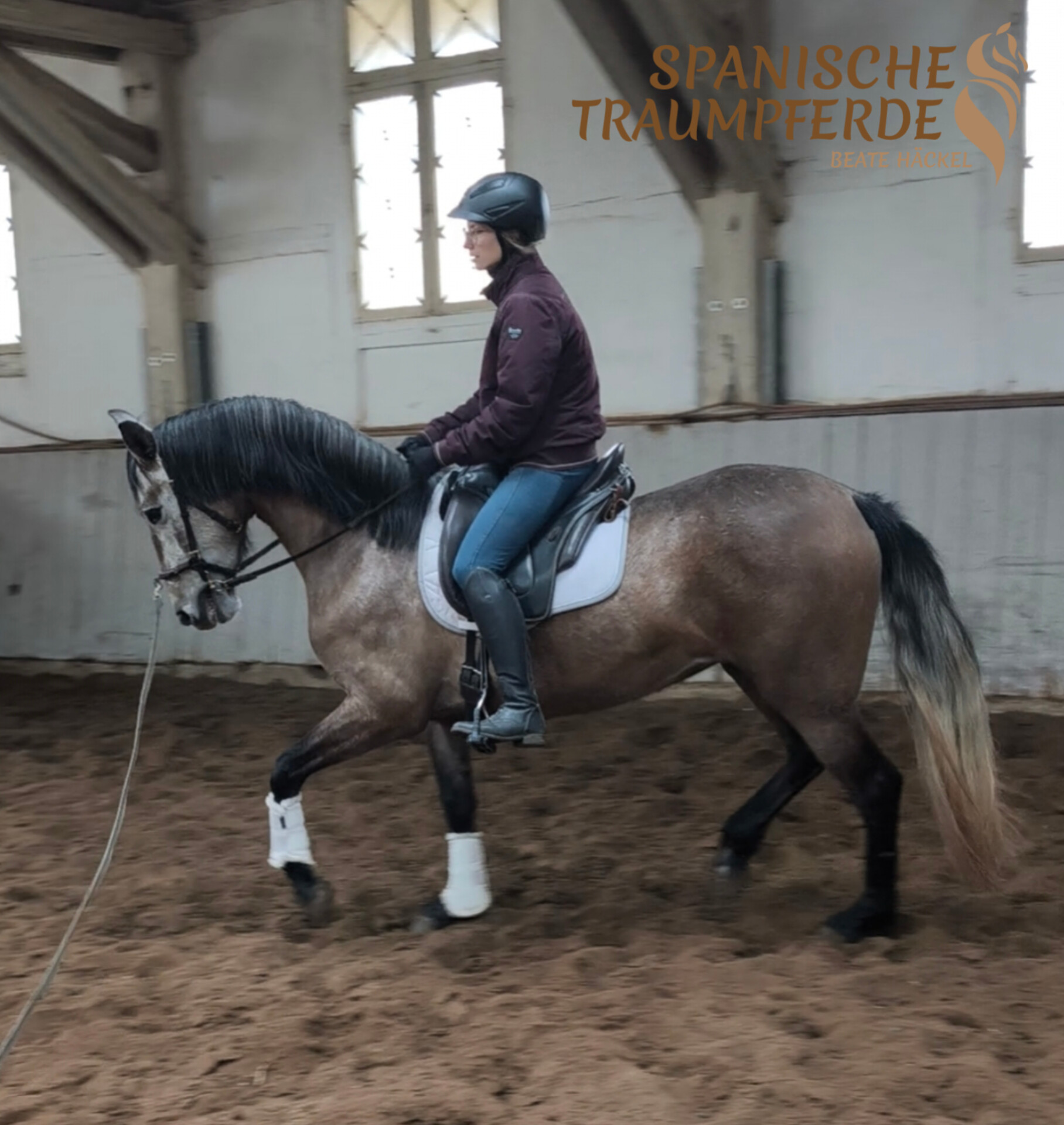 Unsere wunderschöne PRE-Stute SALMA SH ist bereit, in ihr Für-immer-Zuhause einzuziehen. Altersgerecht steht sie noch ganz am Anfang ihrer Ausbildung zum Reitpferd.