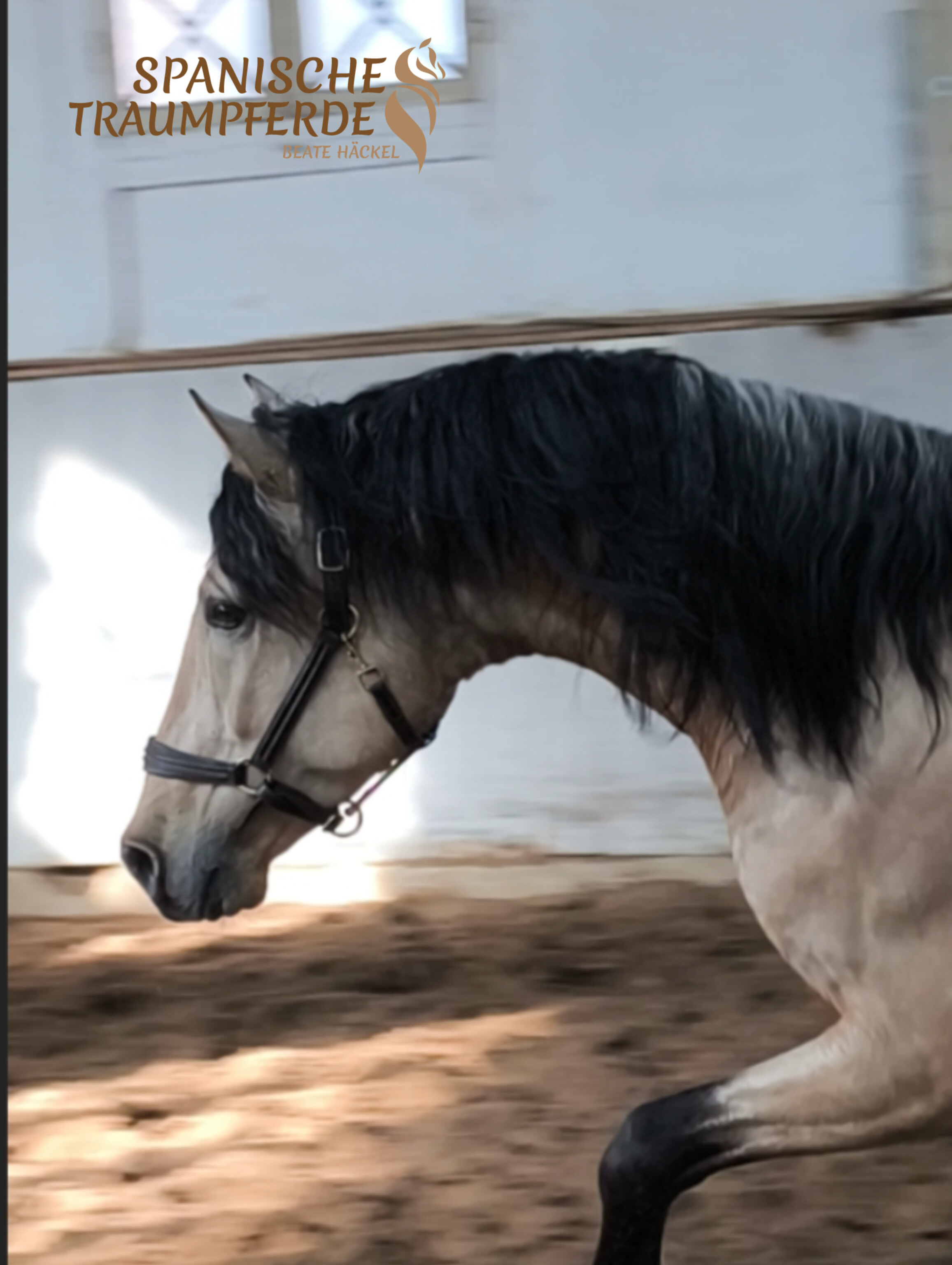 Dieser wundervolle PRE-Hengst in traumhafter Falbfarbe mit herrlich dunklem Behang ist bei uns eingezogen, um von Traventhal aus sein Für-immer-Zuhause und seinen ganz besonderen Herzensmenschen zu finden.
